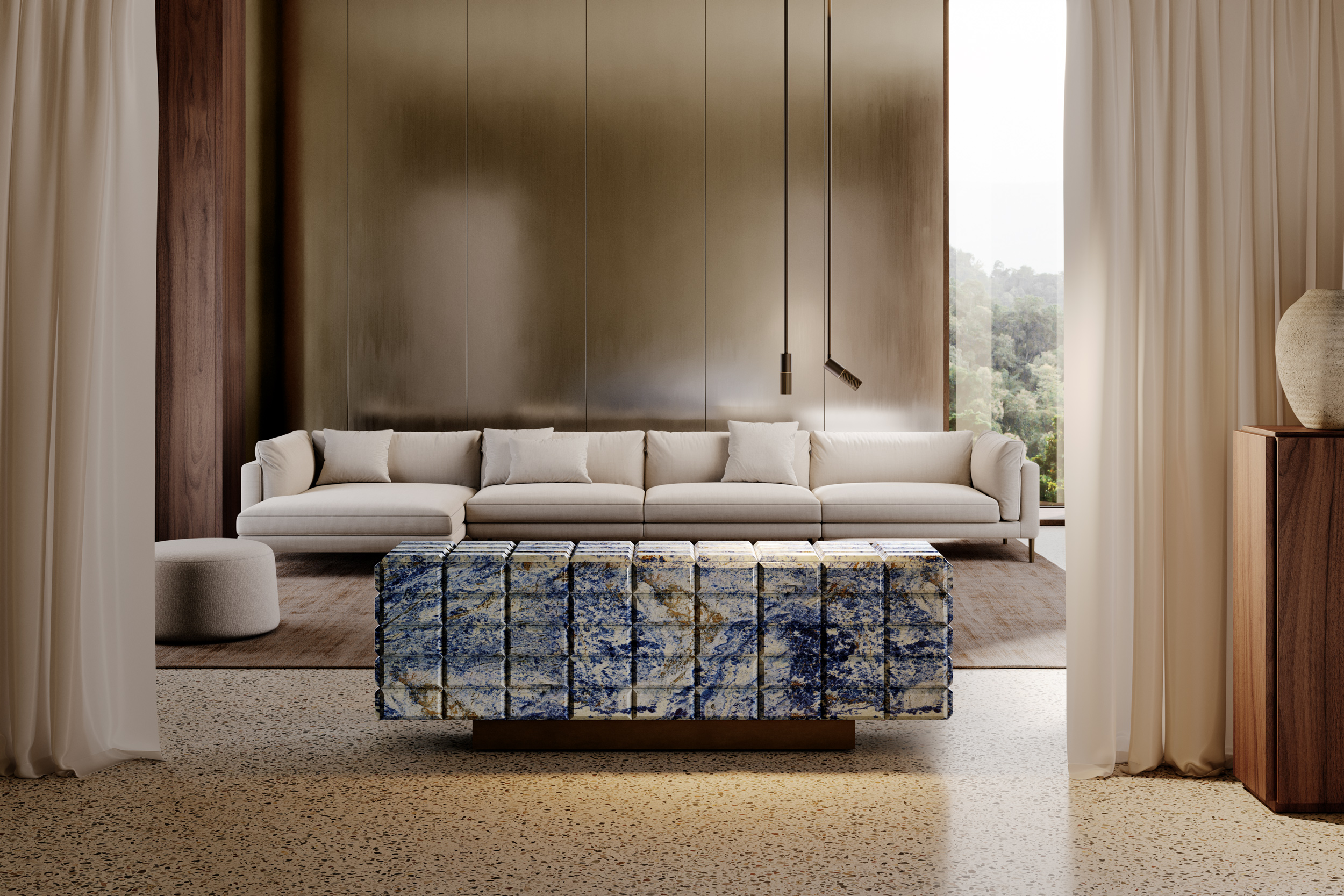 An elongated brass suspension — Venicem's rigorous Venetian-contemporary signature.